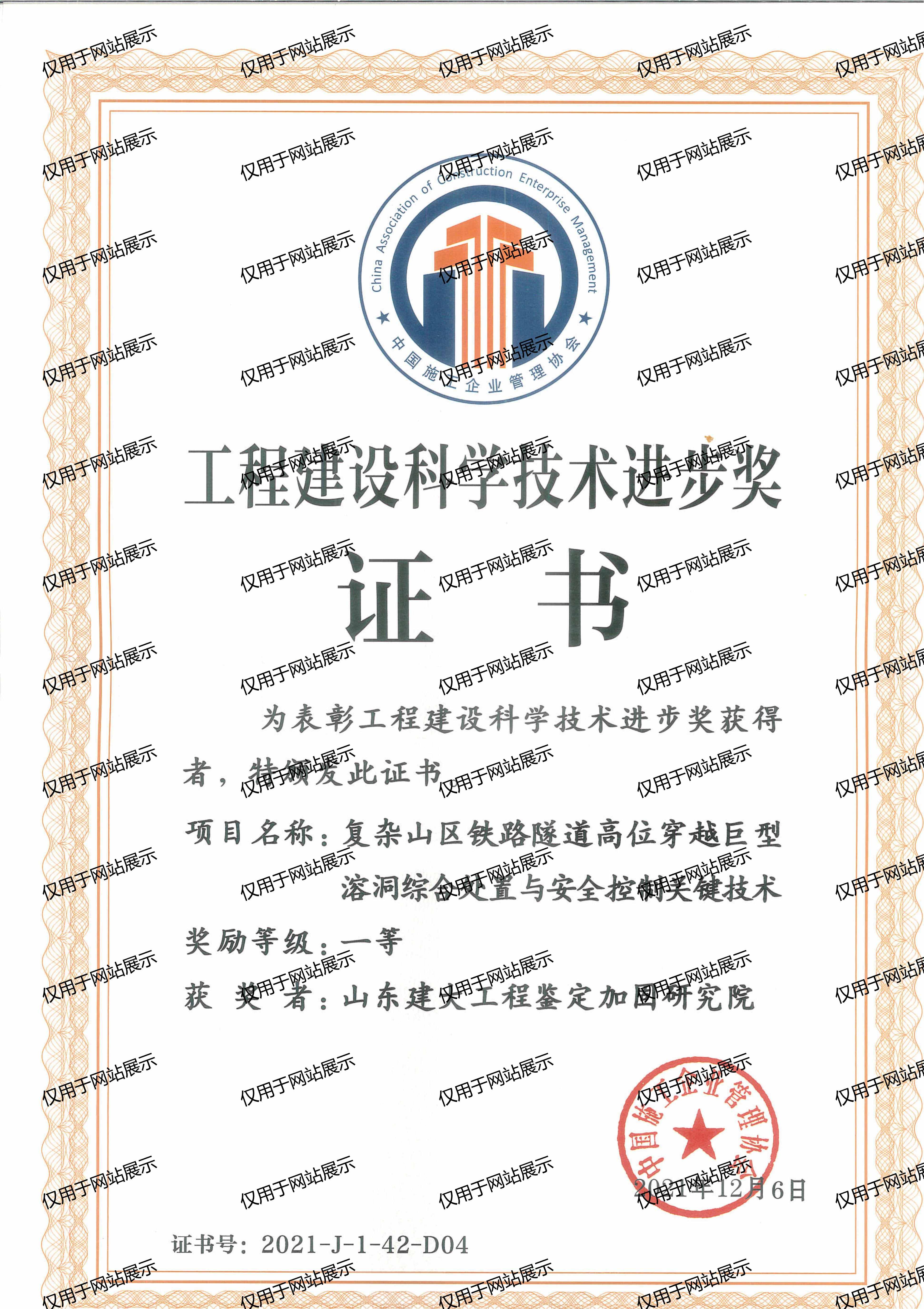2021年工程建設(shè)科學(xué)技術(shù)進(jìn)步獎(jiǎng)一等獎(jiǎng)