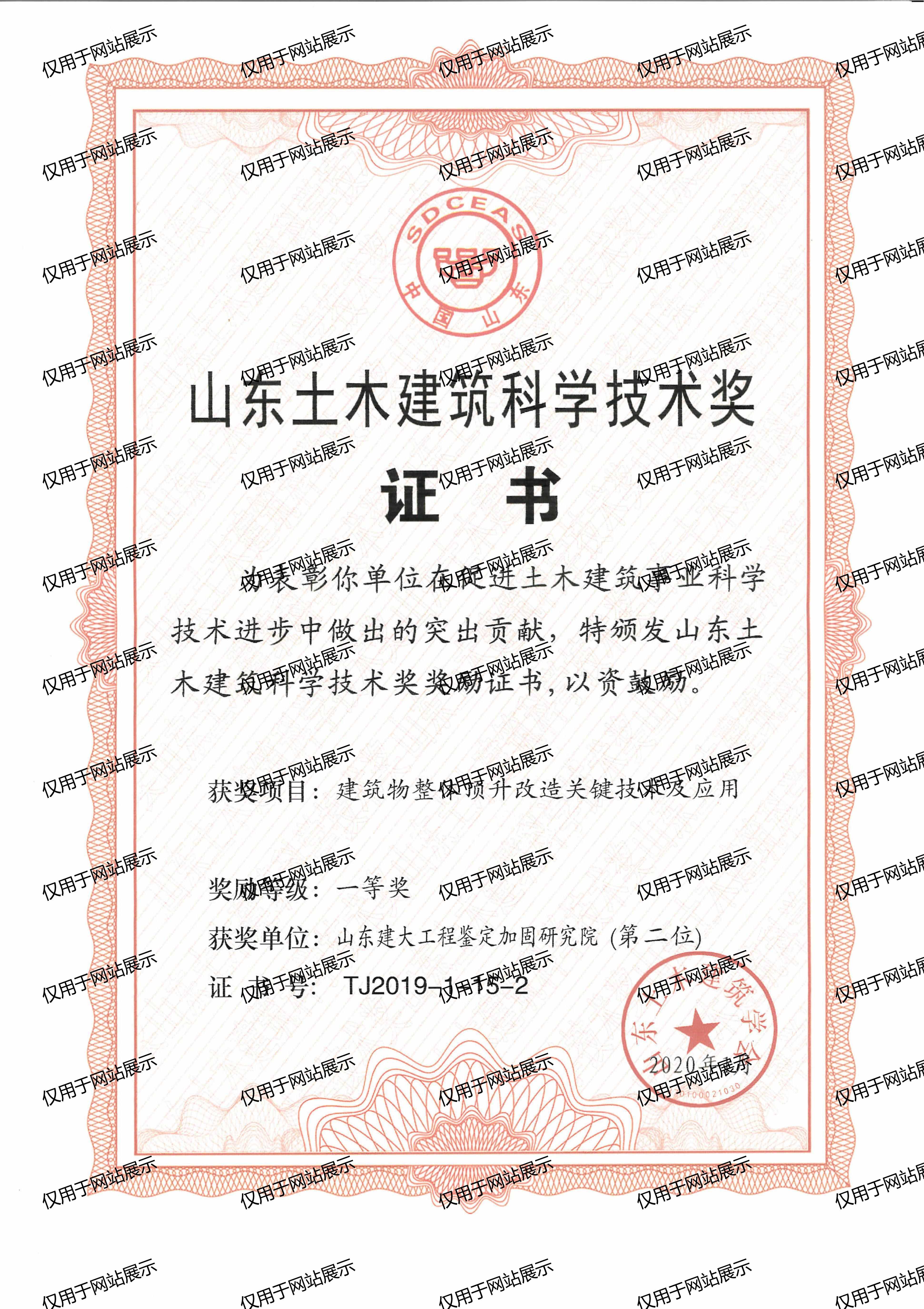 2020年山東土木建筑科學(xué)技術(shù)獎(jiǎng)一等獎(jiǎng)