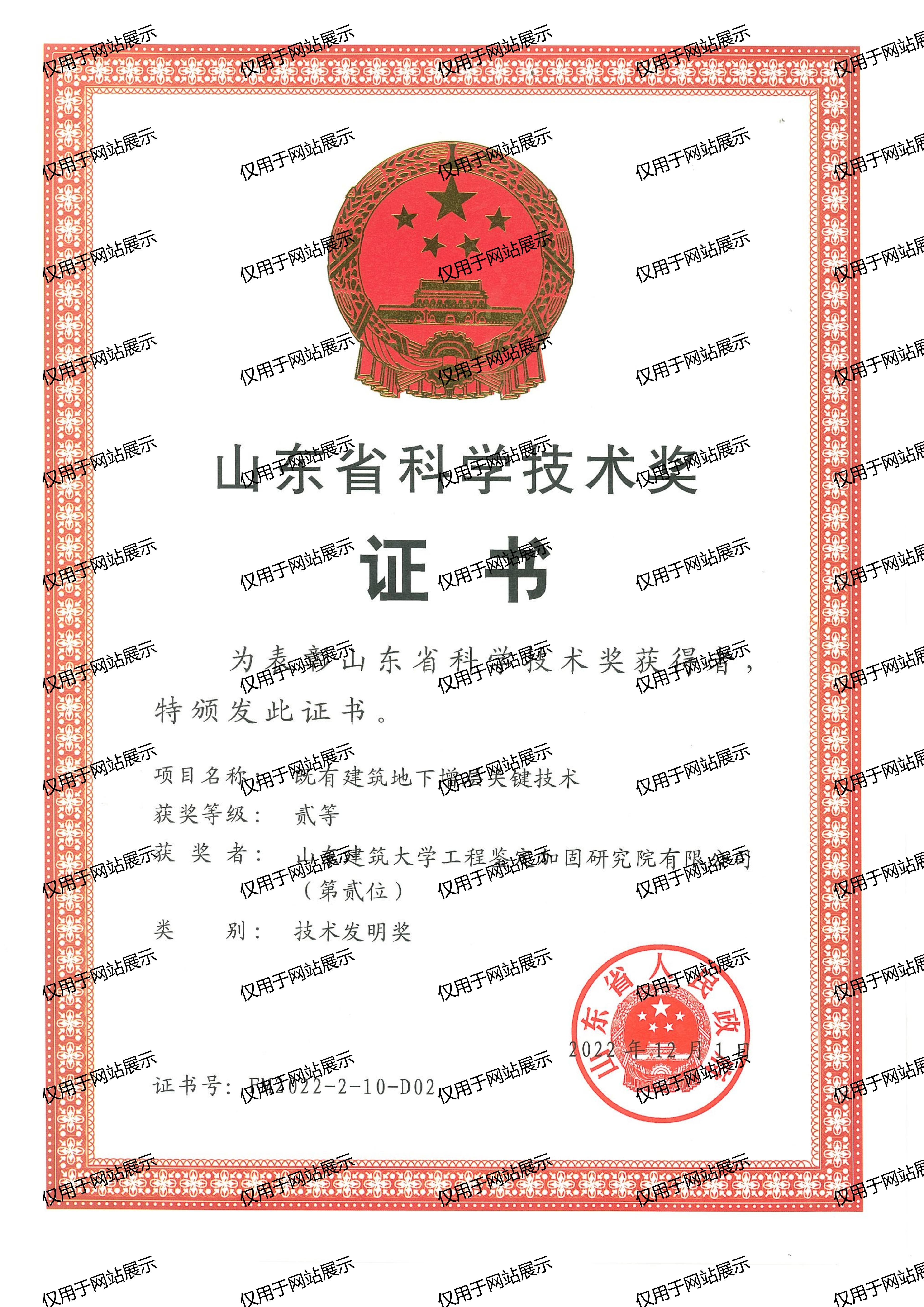2022年山東省科學(xué)技術(shù)獎(jiǎng)二等獎(jiǎng)