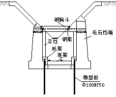 在地下通廊結(jié)構(gòu)中,鋼漏斗內(nèi)鐵礦原料通過鋼梁對毛石擋墻施加豎向力。由于鋼漏斗內(nèi)原料高度經(jīng)常大于設(shè)計高度,使得毛石墻受到來自鋼漏斗較大的恕向壓力,造成毛石墻的基礎(chǔ)下沉,為了避免毛石墻基礎(chǔ)進一步下沉,需要對其進行加固處理。地下通廊皮帶槽與毛石墻體之間的最大距離約1.5m,最小距離0.5m,機械設(shè)備無法進行施工,同時整個加固施工期間不能影響生產(chǎn)的正常運行,經(jīng)過多方論證,決定采用人工成孔的微型樁(樹根樁)對毛石擋墻基礎(chǔ)進行托換處理。通過增加的鋼筋混凝土立柱、地梁和微型樁組成的豎向受力體系分擔來自鋼梁的壓力(圖7),減小毛石擋墻所受的豎向力,從而減小其沉降。