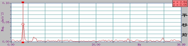 平移前的測試結(jié)果:根據(jù)實測的實時譜曲線,平移前二層樓面振動測點(diǎn)的主頻為2.84HZ(振動周期0.35s)。