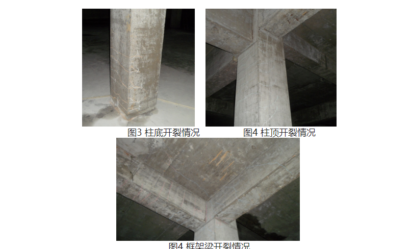 2013年年中工程主體結構施工完成,基礎后澆帶澆筑完成,連續(xù)降雨過程后,地下車庫部分產(chǎn)生整體上浮現(xiàn)象,防水底板隆起,框架柱出現(xiàn)了開裂、壓碎現(xiàn)象,部分梁、板也出現(xiàn)裂縫。